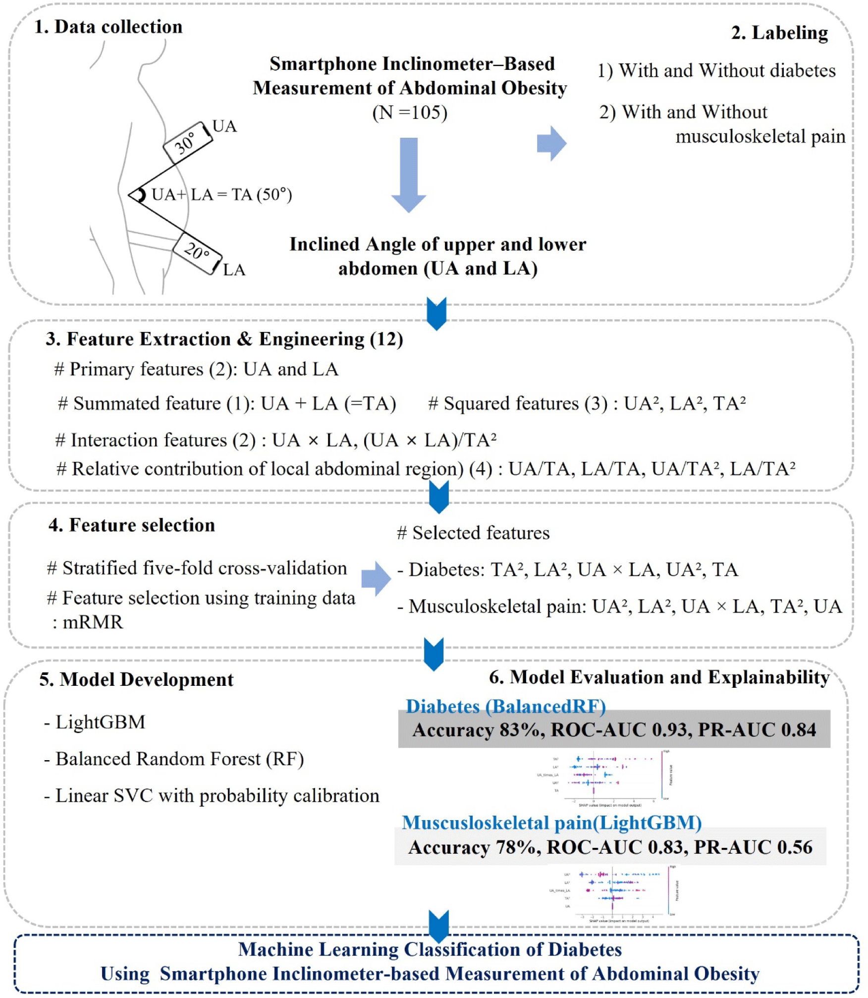 Smartphone Inclinometer–Measured Abdominal Tilt Angles for Classifying Diabetes and Musculoskeletal Pain in Older Adults: A Machine Learning Study
